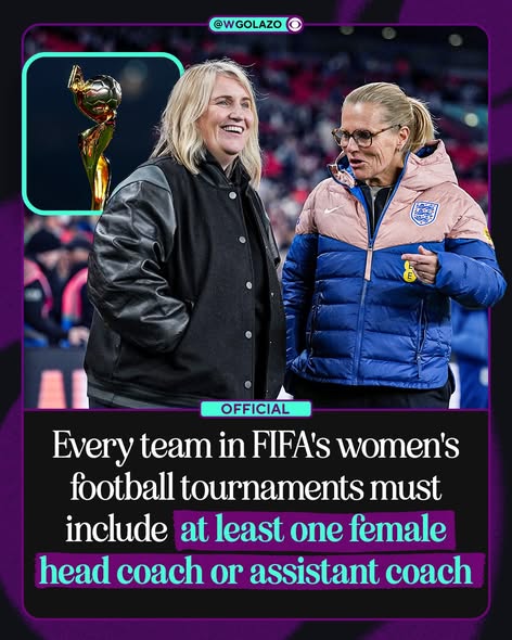 Every team in Fifa’s women’s football tournaments must include at least one female head coach or assistant coach following the introduction of new regulations.